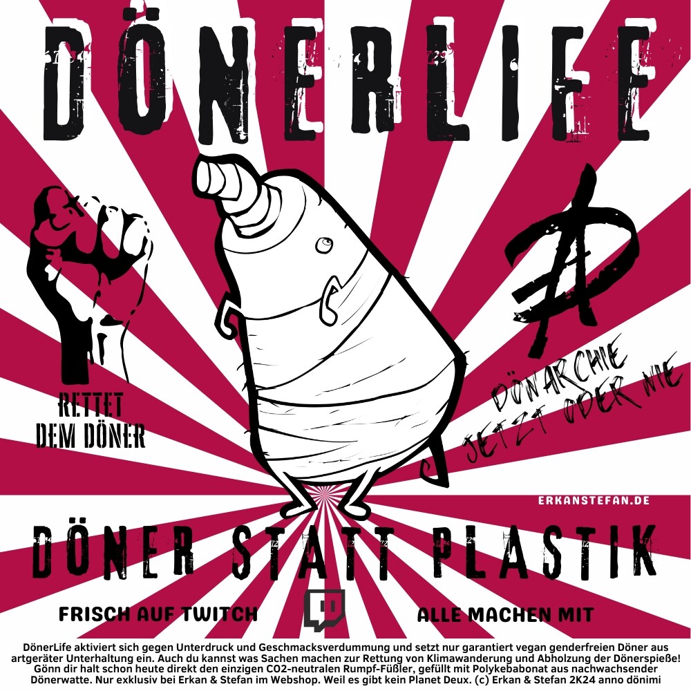 DönerLife aktiviert sich gegen Unterdruck und Geschmacksverdummung und setzt nur garantiert vegan genderfreien Döner aus artgeräter Unterhaltung ein. Auch du kannst was Sachen machen zur Rettung von Klimawanderung und Abholzung der Dönerspieße! Gönn dir halt schon heute direkt den einzigen CO2-neutralen Rumpf-Füßler, gefüllt mit Polykebabonat aus nachwachsender Dönerwatte. Nur exklusiv bei Erkan & Stefan im Webshop. Weil es gibt kein Planet Deux. ©Erkan & Stefan 2K24 anno dönimi