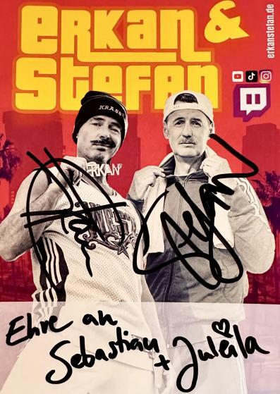 Schreibt gerne an krass@erkanstefan.de, nennt uns die Widmung (Geschenk etc) und Erkan & Stefan schreiben das für Euch auf die Karte